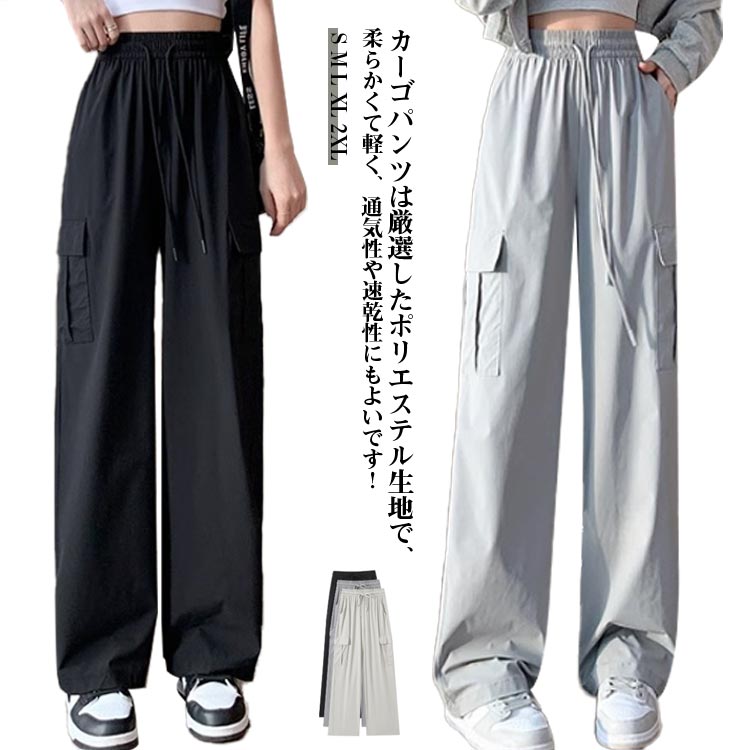 春夏 作業ズボン アイスシルク 無地 パンツ カーゴパンツ 美脚 ワイドパンツ ウエストゴム ストレートパンツ ゆったり レディース uvカット 快適 ひんやり 涼しい ロング ポケット