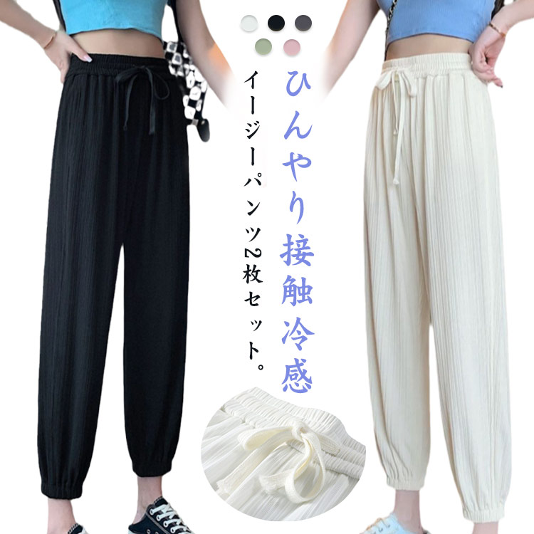パンツ 薄手 接触冷感 レディース 冷感パンツ 2枚セット 涼感 ひんやり ジョガーパンツ