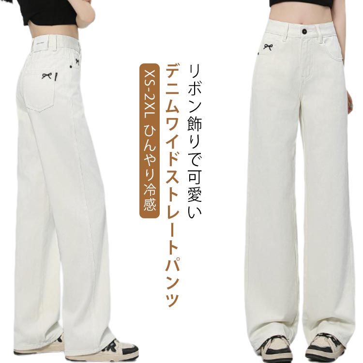 XS-3XL ジーパン デニムワイドパンツ ワイドパンツ ひんやり 冷感 レディース 薄手 大きいサイズ 全7色 夏 ボトムス デニム ワイド ストレート ハイウェスト 細見え パンツ デニムパンツ
