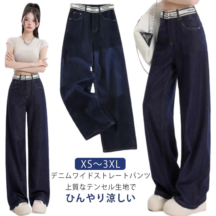 ワイド デニムワイドパンツ 薄手 ひんやり リラックスパンツ 涼しい レディース 大きいサイズ ボトムス 夏 XS-3XL デニム ワイドパンツ ストレート デニムパンツ 細見え パンツ ロ テンセル