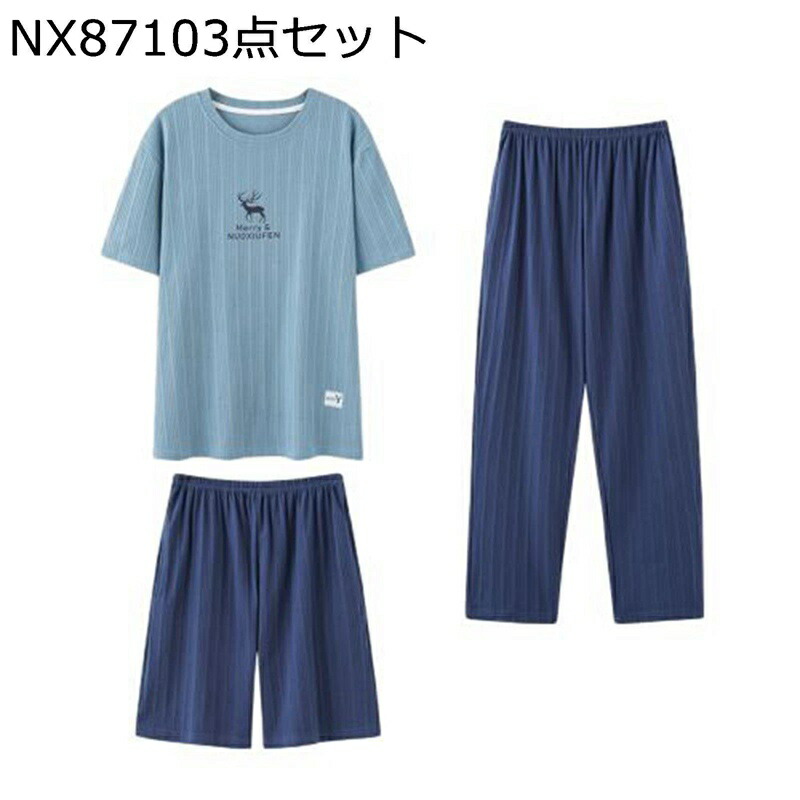 パジャマ メンズ 三点セット 半袖 春夏 ルームウェア 家着 上下セット ショーパン ロングパンツ 綿 通気性 吸汗速乾 肌に優しい 寝巻き お風呂 大きいサイズ ゆったり お出かけ 部屋着