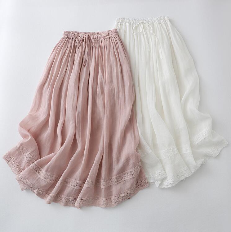 リネンスカート ロングスカート フレアスカート 森ガール 膝丈スカート リネン風 スカート ミモレ丈スカート かわいいひざ丈 膝丈