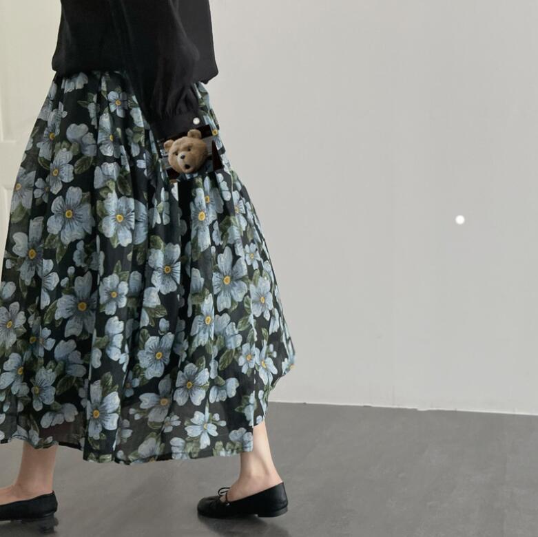 花柄スカート フラワースカート 膝丈スカート リネン風スカート ミモレ丈スカート かわいいひざ丈 膝丈 レディースフレアスカート春夏