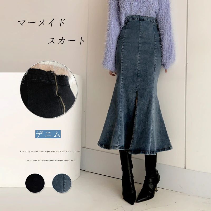 デニムスカート マーメイドスカート タイトスカート ロングスカート レディース 秋冬 ロングタイトスカート ハイウエストスカート スカート 黒 フリル ボトムス Aライン フ 大きいサイズ