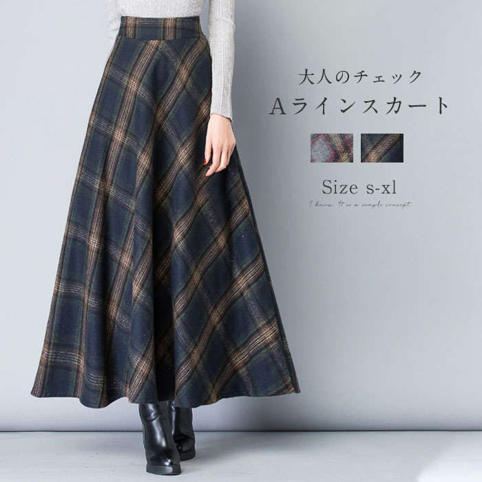 フレアスカート ミモレ丈 スカート 秋冬 ロング aラインスカート ロングスカート チェック柄 ハイウエスト レディース ボトムス 大きいサイズ フレア ロング丈 膝下 aライン