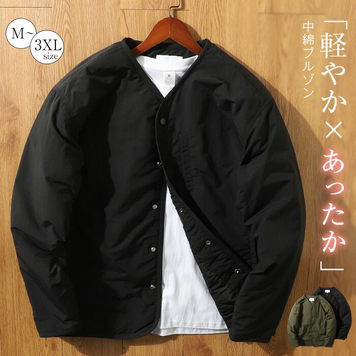 ブルゾン 防寒 メンズ ジャケット キルティング 中綿キルト アウター ライトアウター Vネック ユニセックス ノーカラー 長袖 軽い ミリタリー 軽量 ジャンパー キルティングコート 大き あったか