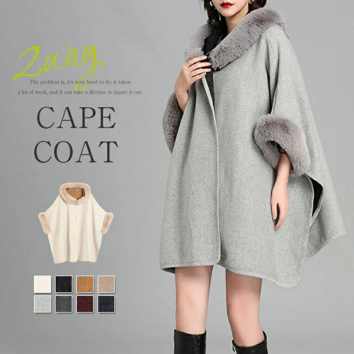 ポンチョ レディース コート 秋冬 和装 着物 ケープ ポンチョコート ファー付き 着物用 洋服 アウター マント 前開き フード付き サイドスリット 大人 エレガント カジュアル きれいめ フェミニ
