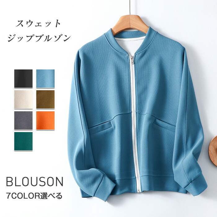 スウェット スタジャン レディース ジャケット カーディガン ブルゾン 長袖 トップス ライトアウター 無地 ノーカラー ジップアップ トレーナー ポケット リラックス オールシーズン おし シンプル