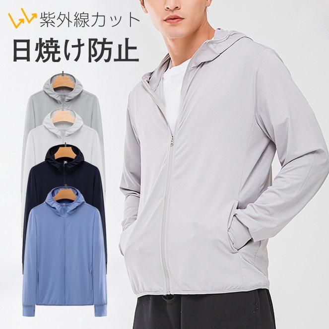 メンズ トップス ラッシュガード ラッシュパーカー UVパーカー 吸水速乾 紫外線カット 体型カバー 帽子付き 日焼け防止 冷感 UVカット