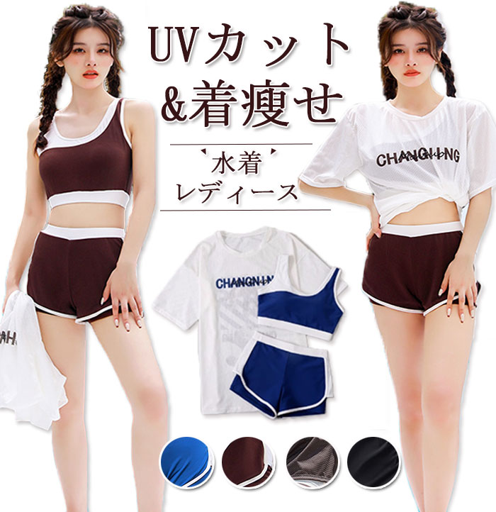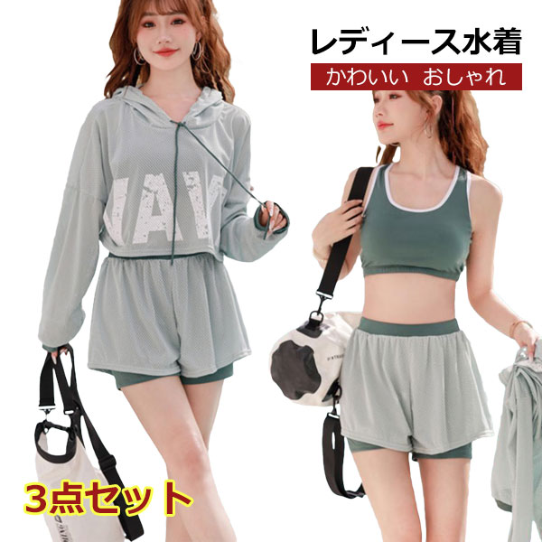 水着 レディース 体型カバー 高校生 中学生 3点セットプール スポーティー ママ ラッシュガード 韓国 女の子 10代 20代 30代 海 可愛い おしゃれ 着 せ スイ かわいい