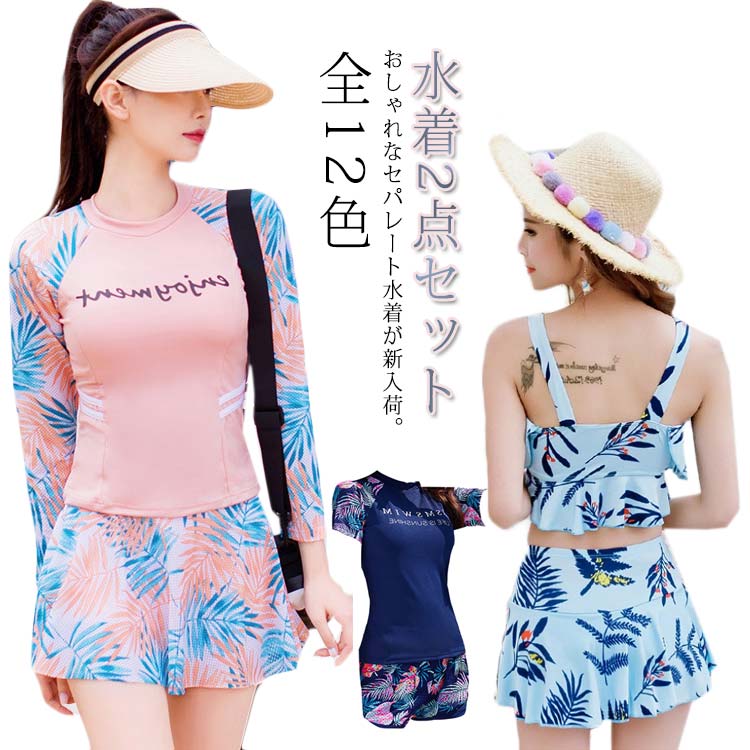 水着2点セット 上下 水着 レディース 体型カバー 韓国風 セパレート みずぎ ミズギ 可愛い水着 紫外線対策 UV 温泉 プール 海 旅行 スイムウエア 20代 30代 10代 学生水着