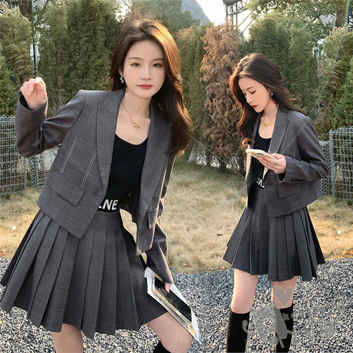 可愛い 高校生 入学式 卒業式 スーツ 女の子スーツ フォーマルスーツ グレー セットアップ 韓国制服 おしゃれ 高品質 送料無料
