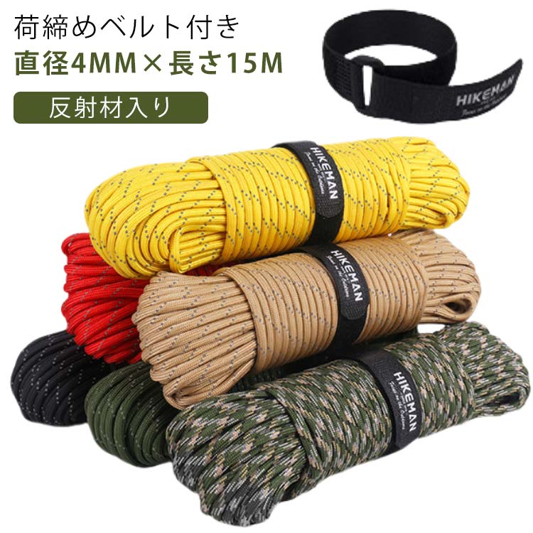 4mm ロープ テントロープ 15m 10芯 反射 手芸 腕輪 9芯 材入り パラシュートコード ハンドメイド ファイヤーコード 強力 ブレスレット ファイアー コード 耐荷重415kg ガイドロープ