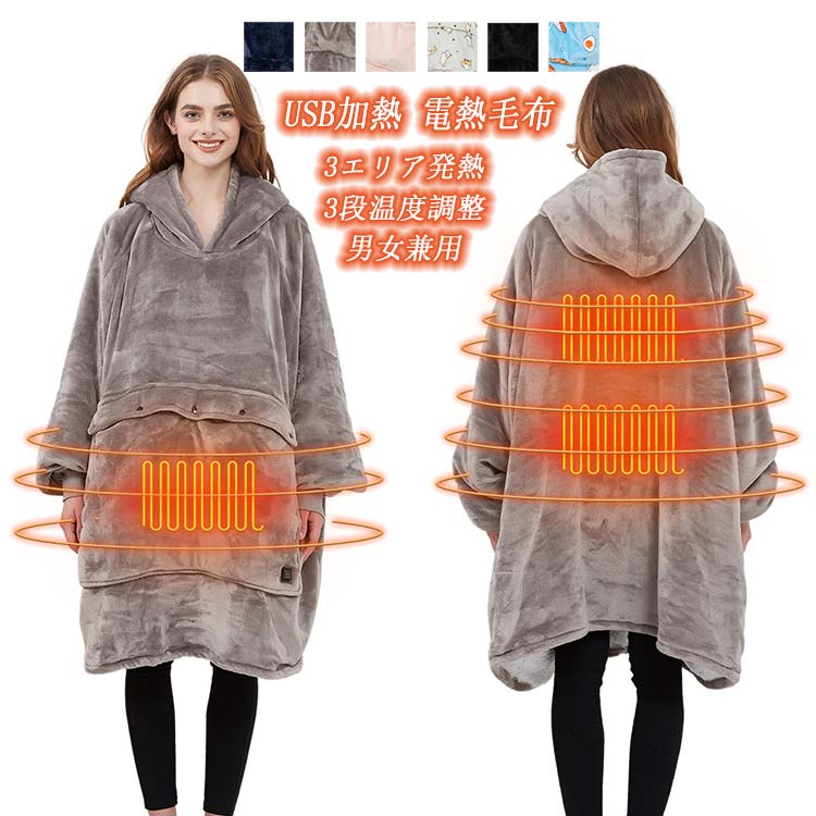 長袖 冬用 もこもこ メンズ レディース パーカー ルームウェア 着る毛布 なまけ 3段温度調整 3エリア発熱 電熱毛布 男女兼用