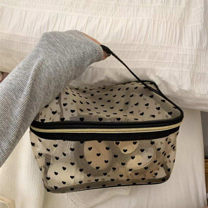 ポーチ トラベルポーチ コスメ 化粧品入れ 小物収納 バニティポーチ メイクポーチ 大容量 透明 ハート 可愛いバッグ 持ち運び旅行