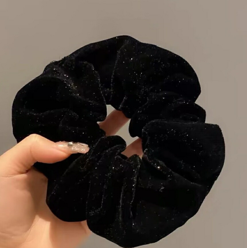 煌めくラメがさり気なく存在感を出すベロア素材のシュシュ。簡単アレンジも華やかな仕上がりに。