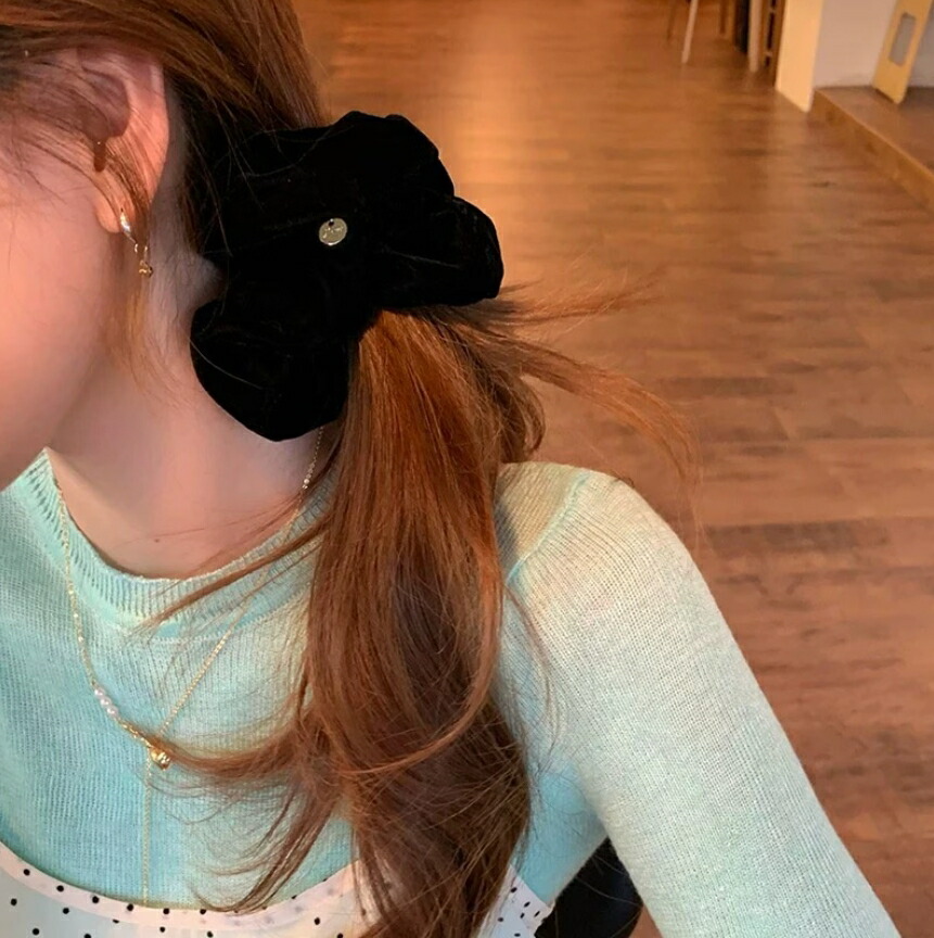 高見えなベロア素材がこれからの季節によく合うビッグシュシュ。