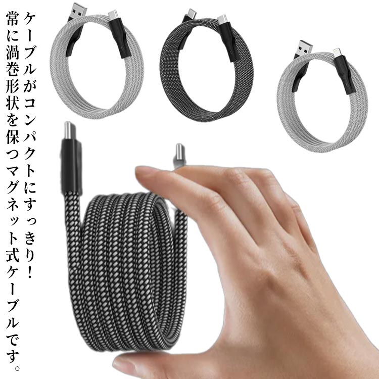 マグネットケーブル 断線しにくい 充電ケーブル マグネット 巻き取り - タイプ