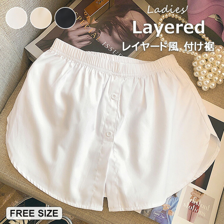 気になる体型をカバーできる 付け裾 つけ裾 テールカット フェイクレイヤードシャツ レディース ボトムス 無地 着回し 体型カバー カジュアル オールシーズン 重ね着風