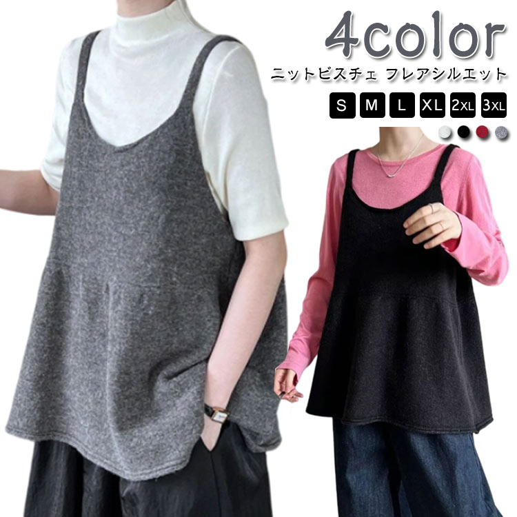 レイヤード キャミソール トップス タンクトップ ニットベスト 無地 体型カバー 秋冬 ニットベストレディース ニットベストメンズ ニットビスチェ 秋 ビスチェ ベスト ノースリーブ ゆったり フレア