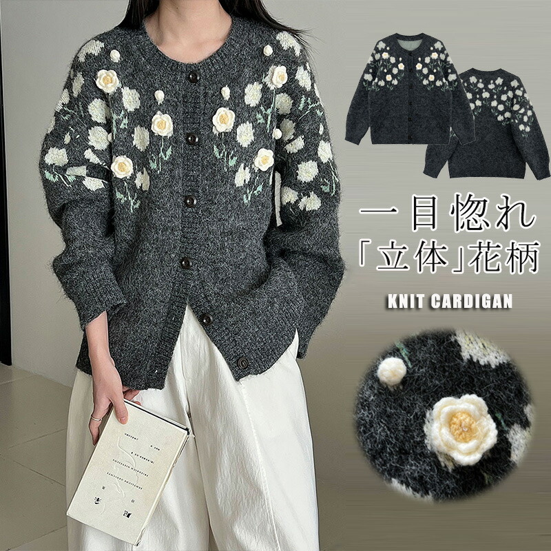 カーディガン ニットコート 立体花 二ットカーディガン トップス ニット レディース 春 秋 冬 羽織 長袖 羽織もの 花柄 手刺繍 大きいサイズ 羽織り 上着 配色