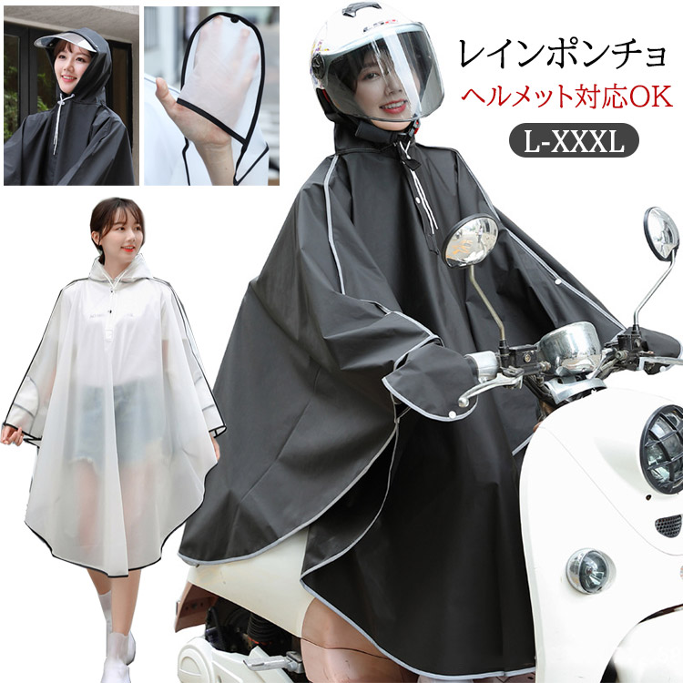 【送料無料】大きいサイズ レインウェア レインポンチョ 自転車 ヘルメット着用可能 雨具