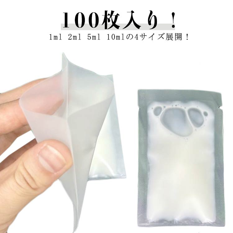 パウチ容器 パウチ 100枚入り 2ml 漏れ防止 1ml 5ml 10ml 収納 トラベルボトル 袋入り 詰め替えボトル 乳液 小分け 化粧水 クリーム