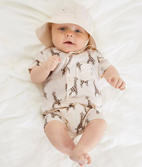 虎柄キリン柄ロンパースベビー服赤ちゃん半ズボン女の子男の子ボタンカバーオールコットン可愛いおしゃれ韓国ナチュラル66cm~100cm春夏秋綿ベビー部屋着パジャマシンプルおしゃれボタン