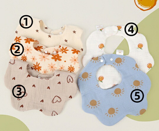 2枚セットスタイ5デザイン360型よだれかけ男の子女の子よだれかけガーゼビブかわいいおしゃれ出産祝いギフト赤ちゃん プレゼントベビー綿コットンおでかけ襟前かけ