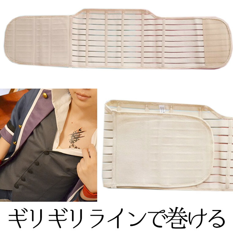 ギリギリラインで好きな強度で巻ける 胸を小さく見せる シェイパー ナベシャツ コスプレ 男装 サポート サポーター インナー 胸つぶし さらし マジックテープ 補正下着 サラシ