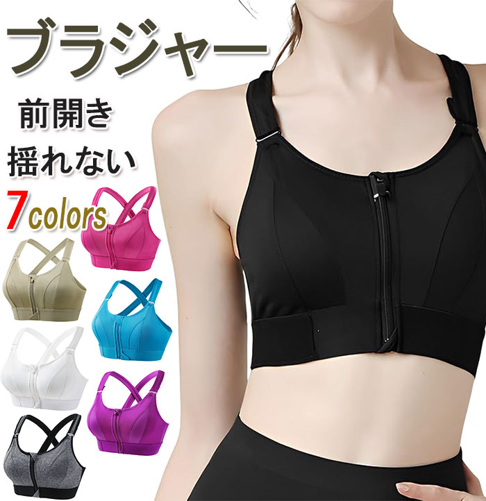 スポーツ ブラ 揺れない 前開き ブラジャー レディース パッド 入り ノンワイヤー ランニング トレーニング バック クロス 伸縮 速乾 おしゃれ リラックスブラ フロントジッパー ブ 大きいサイズ
