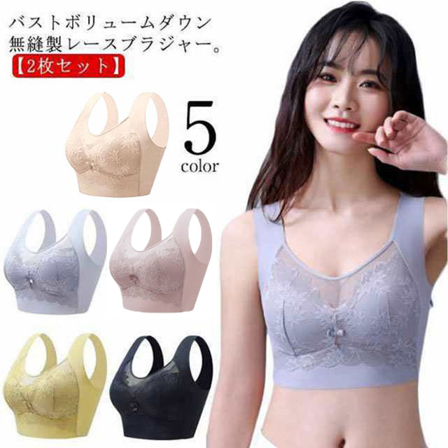 ノンワイヤー 無縫製 ブラ 胸元カバー 胸 2枚セット 胸を小さく見せるブラ レース 小さく見せる フルカップ ブラジャー シームレス 補正下着 ナイトブラ 着瘦せ 谷間を隠す 谷間カバー 薄手カップ