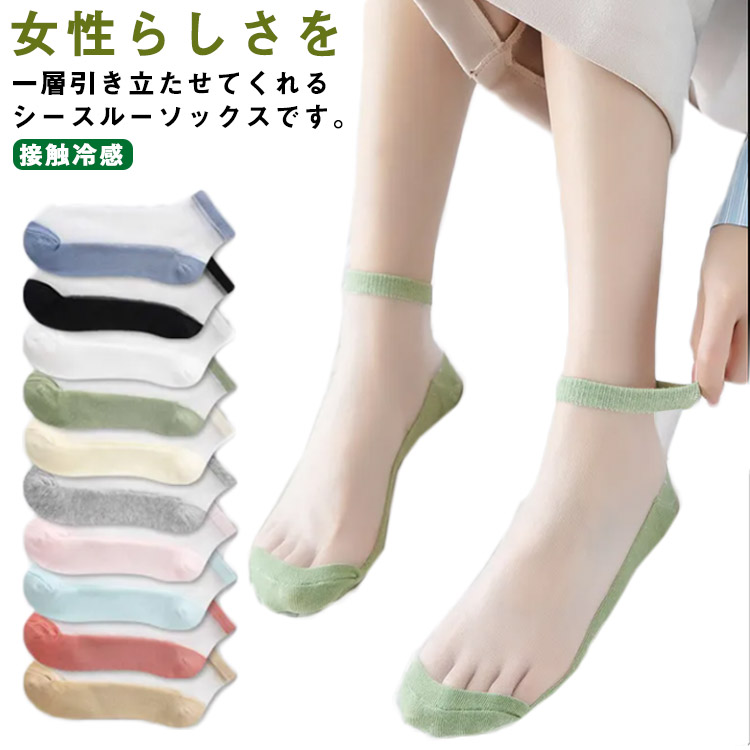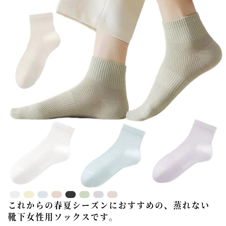 靴下 接触冷感 レディース くつ下 無地 ひんやり 涼しい 女の子 アンクル丈 臭わない 透け メッシュ ソックス クール 蒸れない 通気性 夏用 速乾 防臭 薄手 5足セット 抗菌