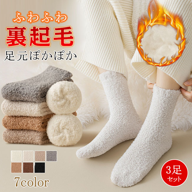 3足セット ソックス 春新作 裏起毛 靴下 暖かい あったか 厚手 レディース ショート丈 シンプル 防寒 冷え性対策 部屋着 女性 ストレッチ ぽかぽか カラバリ豊富 冷えとり靴下 ルームソッ 無地