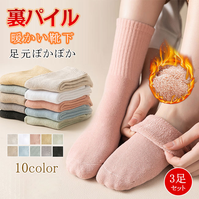 3足セット ソックス 春新作 裏毛 靴下 暖かい あったか 厚手 レディース ショート丈 シンプル 防寒 冷え性対策 部屋着 女性 ストレッチ ぽかぽか カラバリ豊富 冷えとり靴下 ルームソック 無地