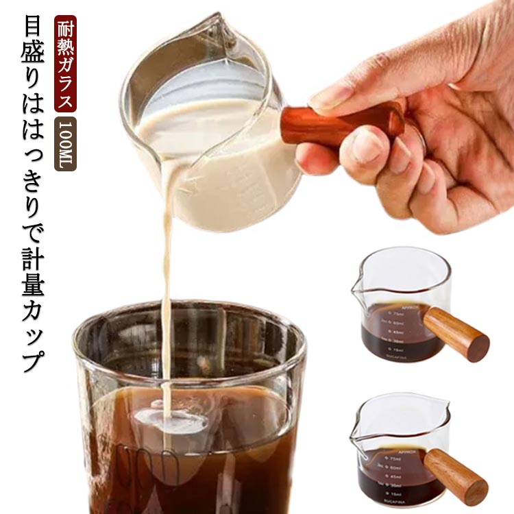 カップ 100ML 目盛り付き 取っ手付き コーヒーカップ ビーカー 珈琲 耐熱ガラス 計量カップ グラス おしゃれ 食洗器対応 コーヒーサーバー コーヒー好き コーヒー器具