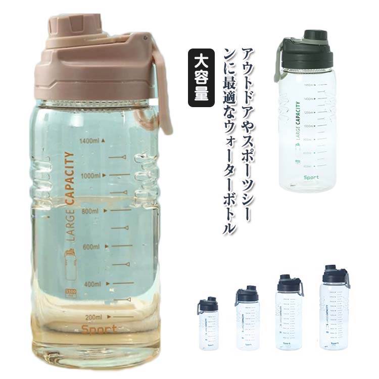 ウォーターボトル 水筒 直飲み 目盛り 大容量 プラスチックボトル 軽量ボトル クリアボトル 茶こし付き ハンドル 取っ手付き 持ち運び スポーツドリンク ボトル 洗いやすい 散歩 オフィ マイボトル