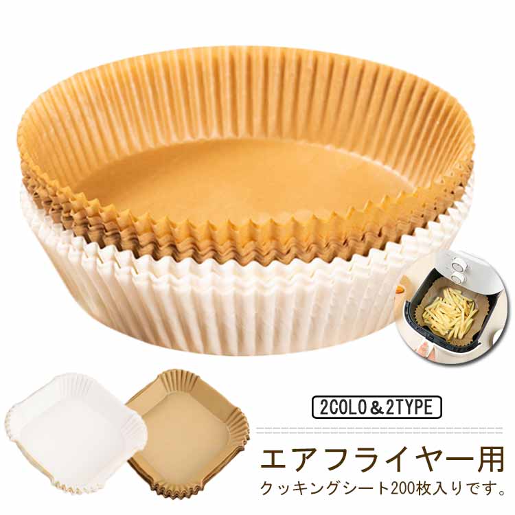エアフライヤー用紙 3-5L適用 5-10L適用 200枚入り スクエア型 円型 クッキングシート エアフライヤー専用紙 耐高温 耐水 耐油 食品級素材 揚げ物 お菓子 使い捨て 天ぷら敷紙 ケーキ