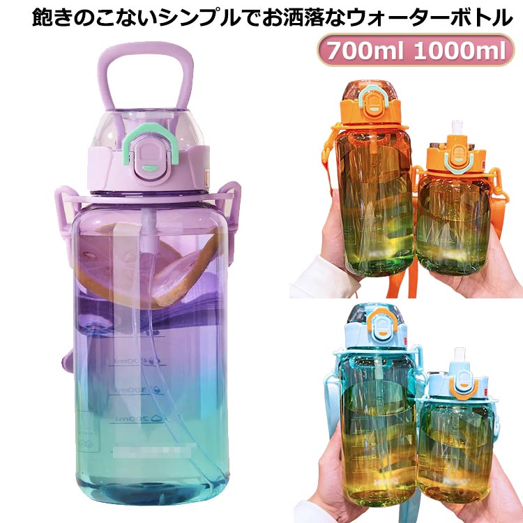 スポーツボトル ストロー 直飲み グラデーション 目盛り付き 透明 水筒 ボトル 700ml 1000ml 軽量 おしゃれ 大容量 男の子 携帯便利 漏れ防止 大人 女の子 ドリン ハンドル付き