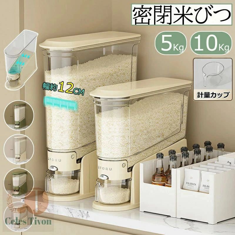 新品 米びつ スリム ライスストッカー 米櫃 こめびつ お米入れ お米収納 米びつ10kg 密閉容器 貯蔵タンク 軽量 大容量 5kg 10kg 密閉性アップ防湿 虫除け 鮮度保 無洗米対応