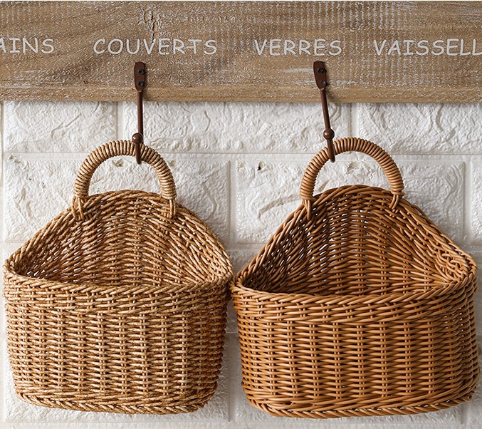 ラタンバスケットかご韓国雑貨インテリア北欧ディスプレイ収納小物入れ可愛いおしゃれブラウンシンプルアンティーク持ち手壁掛け取っ手ピクニックキッチンアジアンワンハンドルフルーツ食べ物野菜小さい大きい