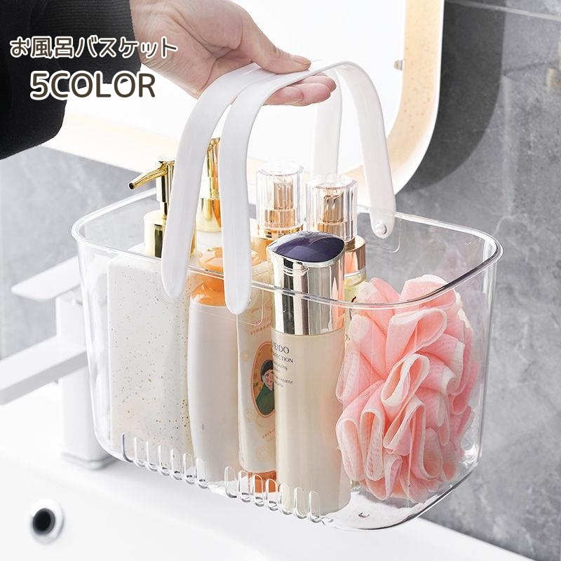 お風呂バスケット バスルーム お風呂 かご バスケット クリア かわいい おしゃれ 収納 お風呂収納 手提げ 浴室 収納ケース 持ち手 水切り 穴あき 収納かご