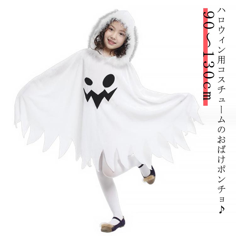パーティー コスプレ仮装 おばけポンチョ 衣装 ケープ 仮装 おばけ 男の子 マント 幼児 キッズ 90~130cm 子供 コスチューム 女の子 変身 幽霊 お化け なりきり ハロウィ 着ぐるみ