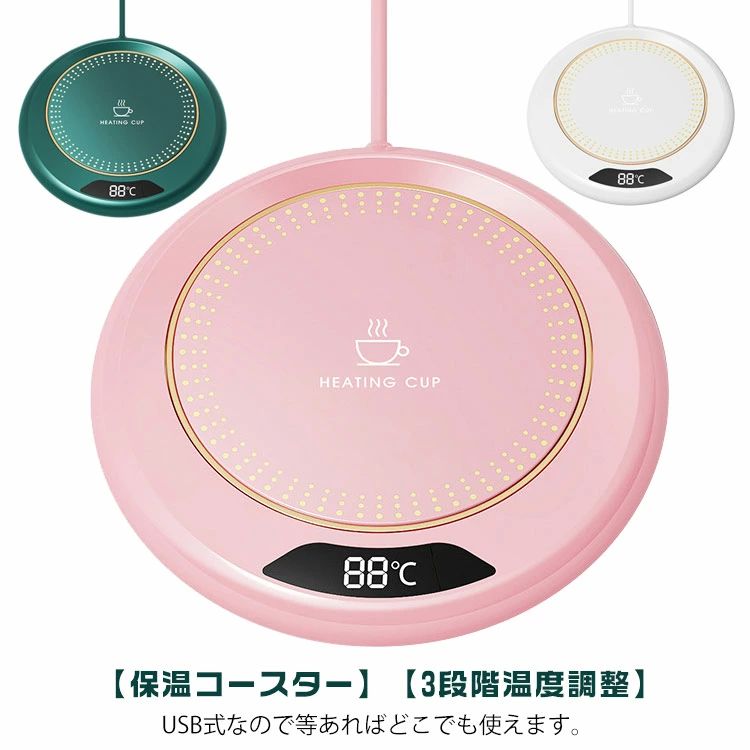 保温 マグカップウォーマー 加熱 忘れ防止 8時間で自動電源オフ USB給電式 65℃ コーヒーウォーマー3段階温度調整55℃ 75℃
