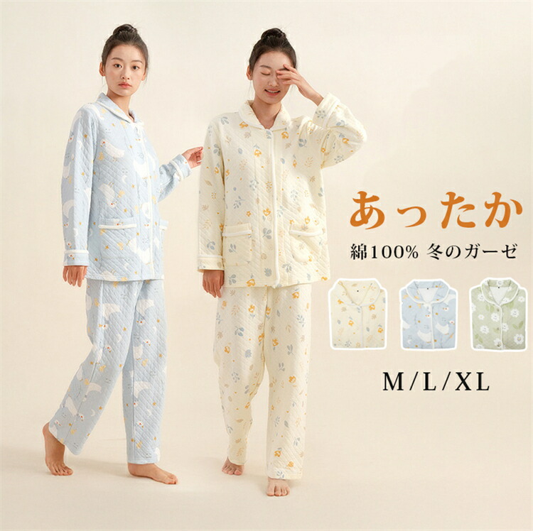 3重ガーゼ レディース パジャマ 冬 あったか 綿 綿100 ガーゼ 三重ガーゼ トリプルガーゼ 送料無料 ギフト プレゼント 2 女性 婦人 長袖