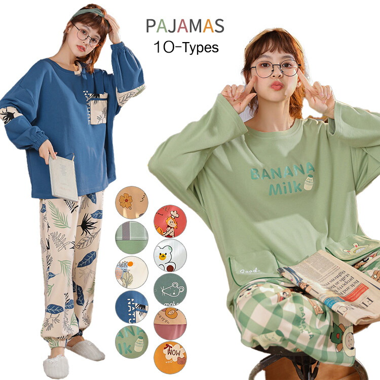 ルームウェア レディース 長袖 上下セット パジャマ 綿 長ズボン 春秋 ゆったり 可愛い