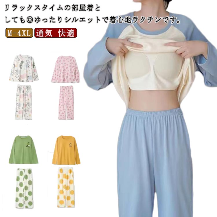 通気 大きいサイズ 秋 上下セット 春 長ズボン ナイトウエア カップ付き 長袖 ルームウエア パジャマ プルオーバー ウエストゴム おしゃれ 快適 肌に優しい 柔らかい 寝間着 ゆったり