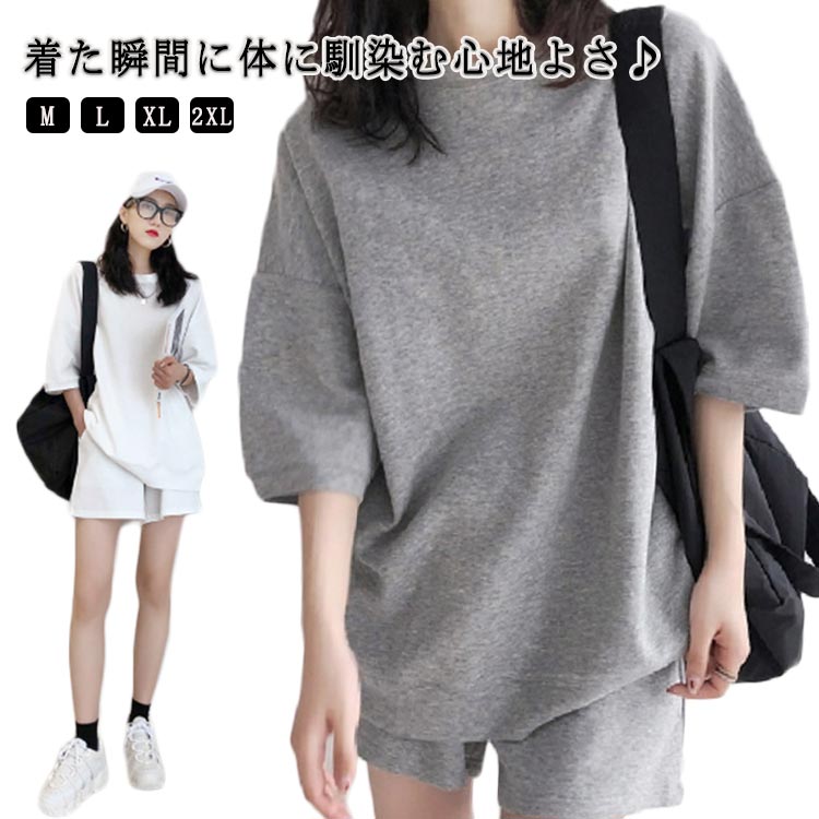 カジュアル 夏 レディース Tシャツ ルームウェア 春 ショートパンツ スウェット セットアップ 無地 部屋着 楽ちん 可愛い ゆったり 半袖ジャージ スポーツウェア 5分 2点セット