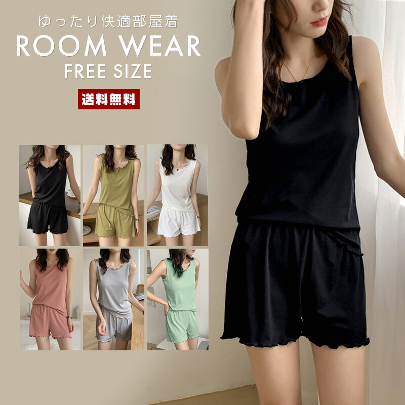 M-5XL ルームウェア 上下 セットアップ 夏用 タンクトップ ショートパンツ 冷感 レディース 部屋着 パジャマ ひんやり フリル 可愛い 韓国ファッション 寝間着