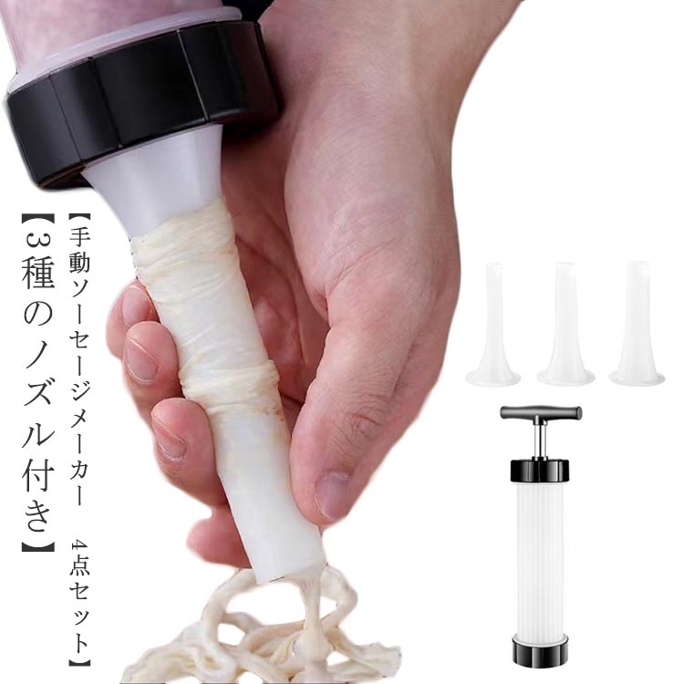 手動サラミメーカー ソーセージ充填装置 手作り 手動小型ソーセージ お手入れ簡単 手動ソーセージメーカー ソーセージ充填機 家庭用 3種のノズル付き 4点セット ソーセージメーカー